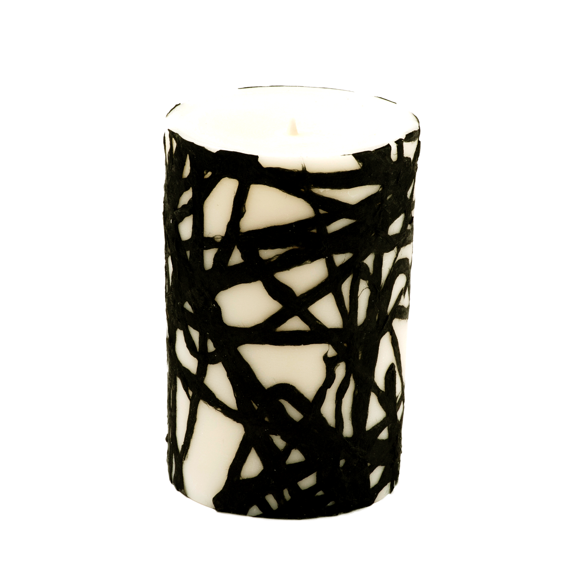 This cylindrical Japanese candle is made of handmade Echizen washi paper. Only the inner part melts and the outer part remains.